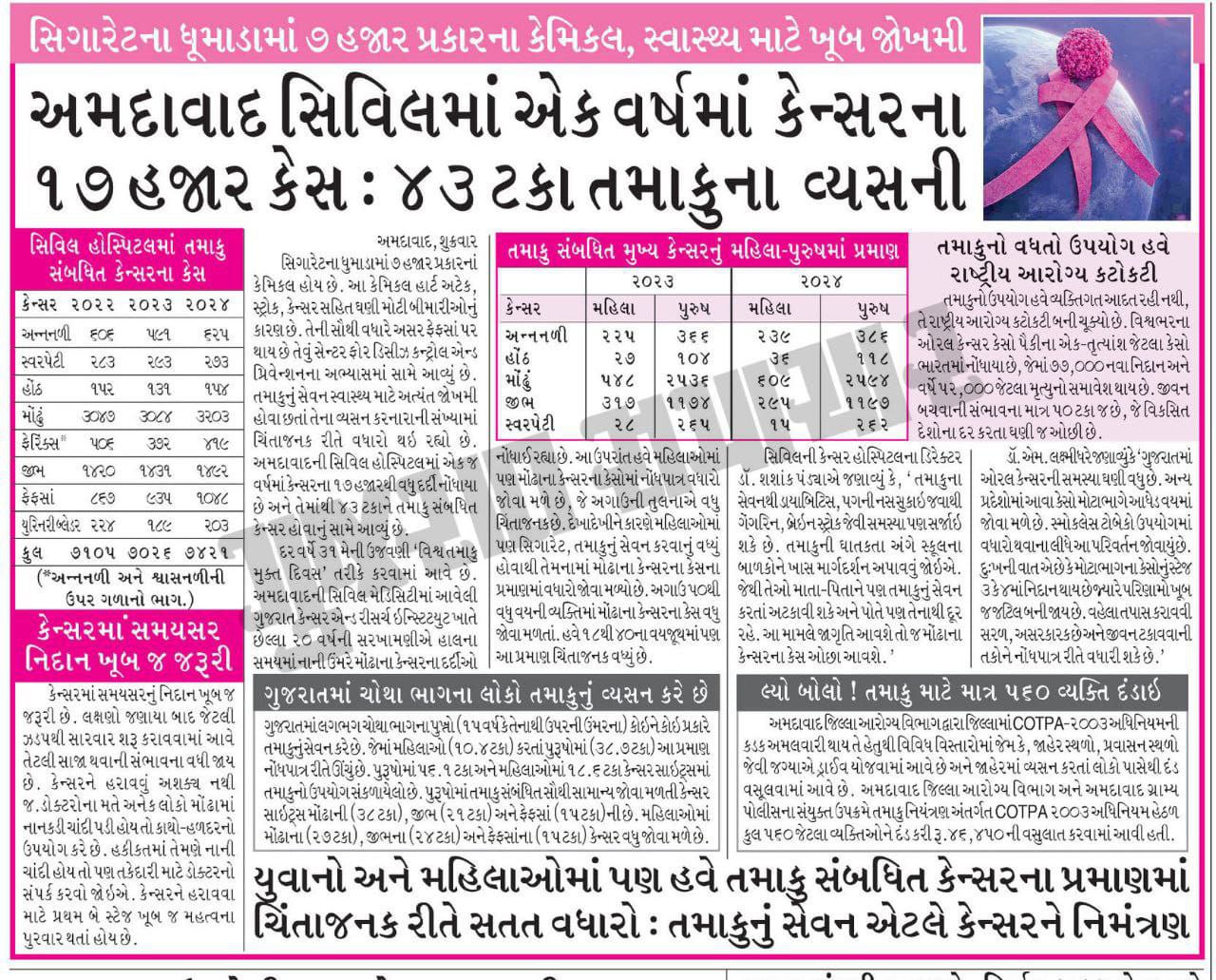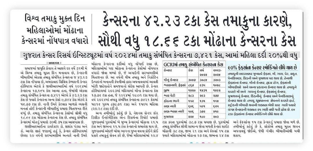 - વર્લ્ડ હેલ્થ ઓર્ગેનાઈઝેશન અનુસાર, તમાકુના સેવનથી થતા રોગોથી દર વર્ષે લગભગ 8 મિલિયન લોકો મૃત્યુ પામે છે.
