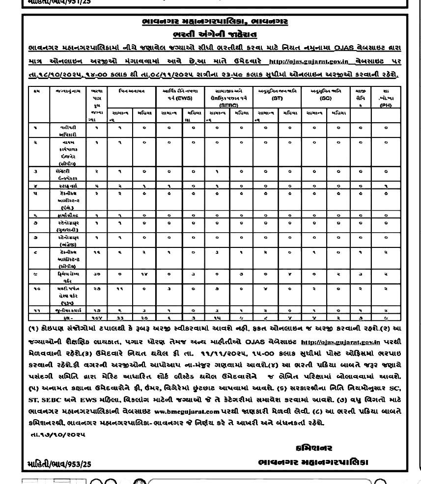 Bhavnagar Municipal Corporation ભરતી 2025 ની સંપૂર્ણ માહિતી