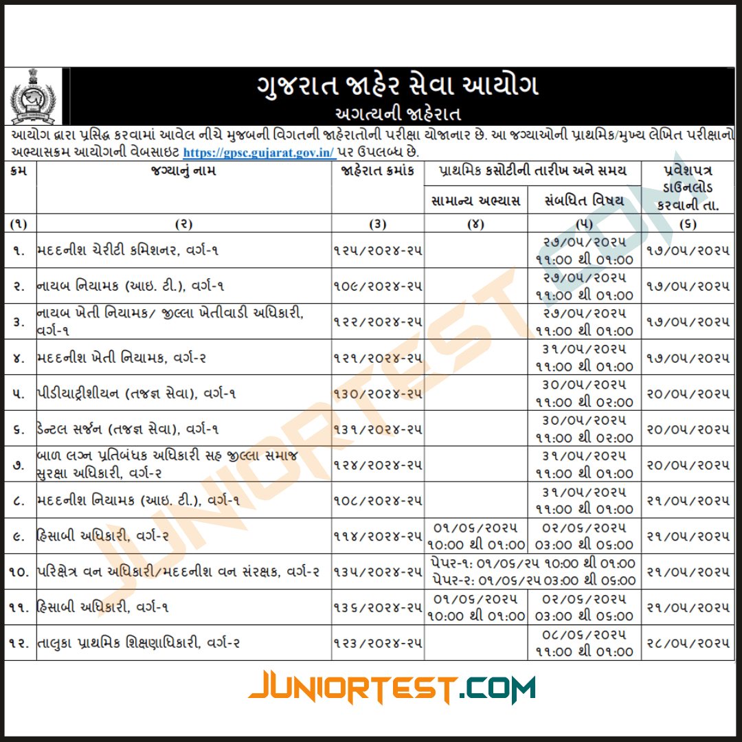 GPSC દ્વારા પ્રીલીમ પરીક્ષા માટે Call Letter
