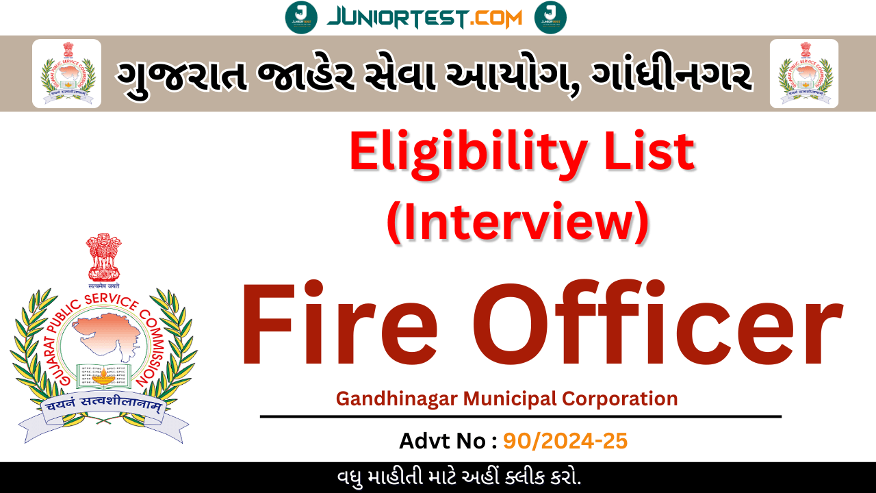 ▪️ Post Name : Fire Officer, Class -2 Gandhinagar Municipal Corporation