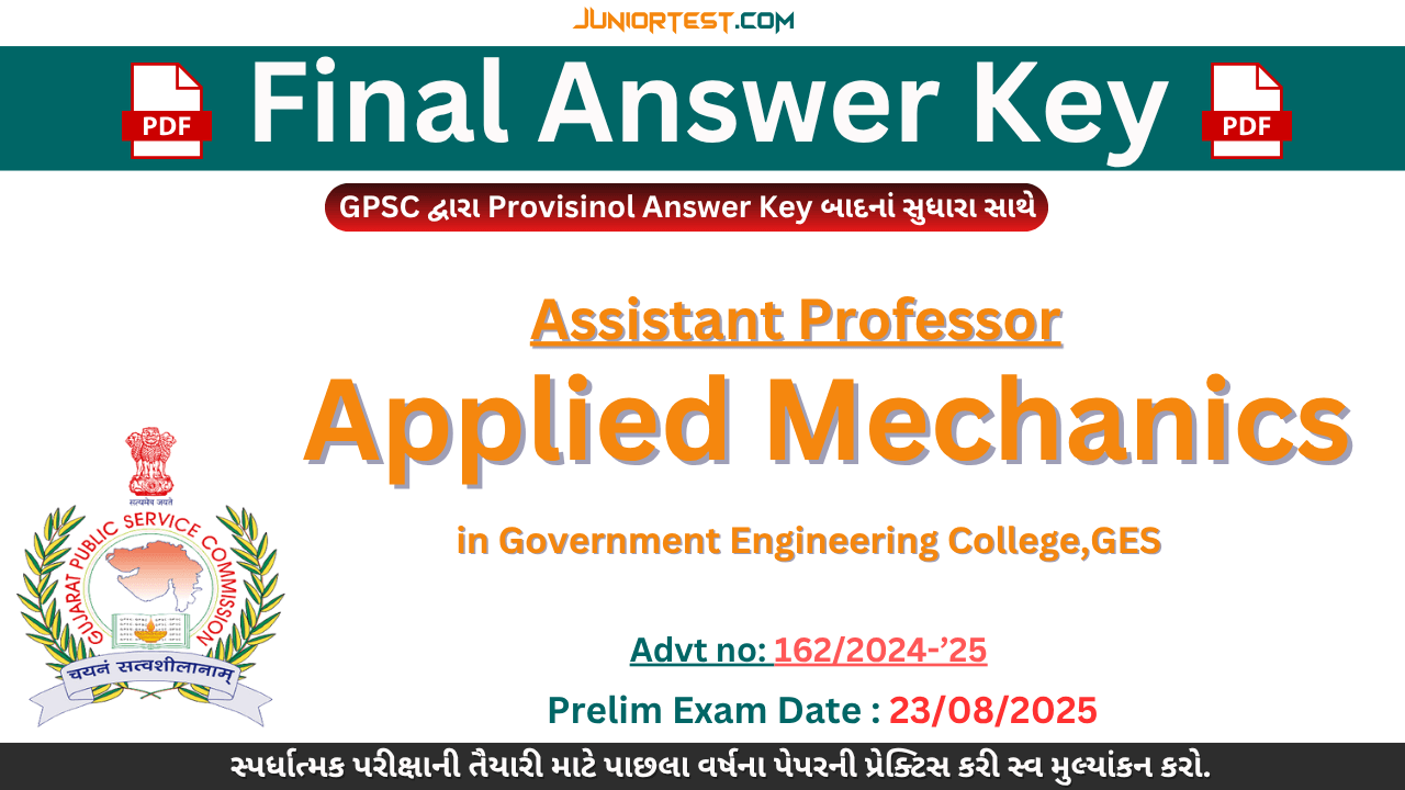 GPSC Assistant Professor, Applied Mechanics Final Answer Key (Advt No. 162/2024-25)
