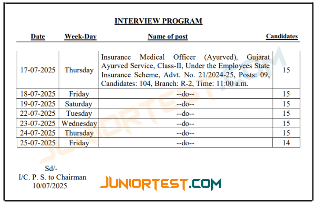 GPSC Interview Schedule (Advt No.21/2024-26)