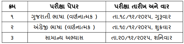 ગુજરાત ગૌણ સેવા, વર્ગ-૩ (ગ્રુપ -Aઅને ગ્રુપ-B) ની સંયુક્ત સ્પર્ધાત્મક પરીક્ષા (ખાસ ભરતી ઝુંબેશ) ની ગ્રુપ-Aની વર્ણનાત્મક મુખ્ય પરીક્ષાની તારીખ બાબત