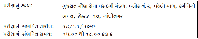 ઉક્ત સંવર્ગની ભાગ-૨ની વર્ણનાત્મક લેખિત કસોટી અંગેનો કાર્યક્રમ નીચે મુજબ છે: