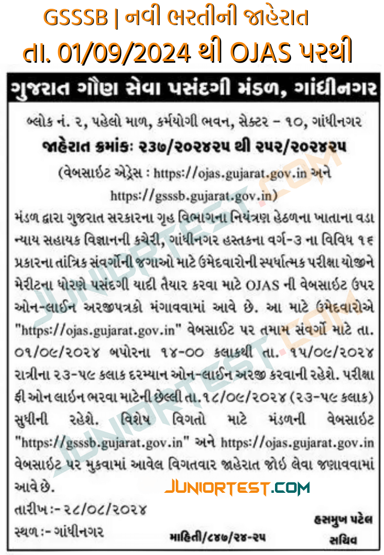 Juniortest Time-Table | ટાઈમ ટેબલ