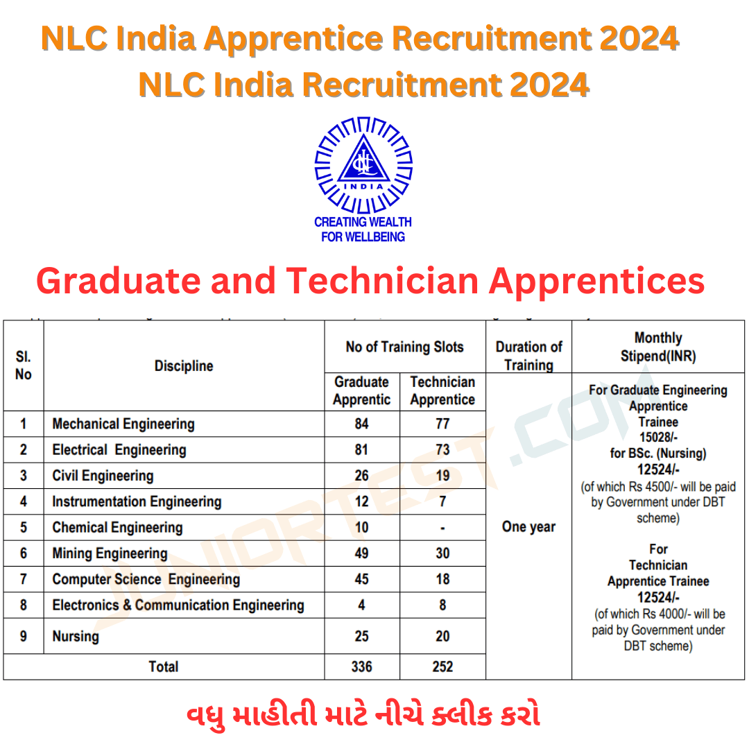 NLC India Limited (Navratna PSU) has published an Advertisement for the Graduate and Technician Apprentices (NLC India Apprentice Recruitment 2024). Eligible Candidates are advised to refer to the official advertisement and apply for this Graduate and Technician Apprentices. You can find other details like age limit, educational qualification, selection process, application fee, and how to apply are given below for NLC India Graduate and Technician Apprentices Recruitment. Keep checking Juniortest.com regularly to get the latest updates for NLC India Apprentice Recruitment 2024.