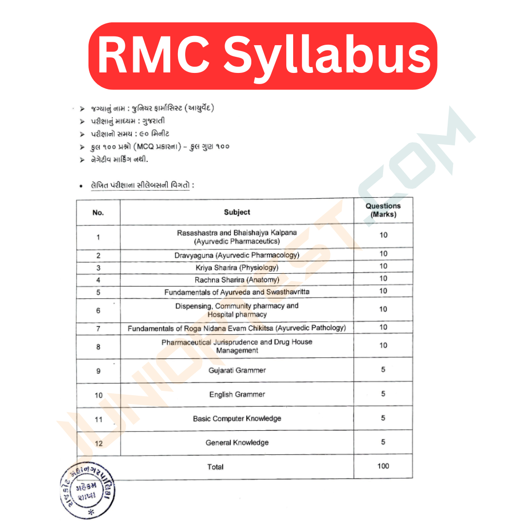 RMC Junior Pharmacist અઅભ્યાસક્રમ