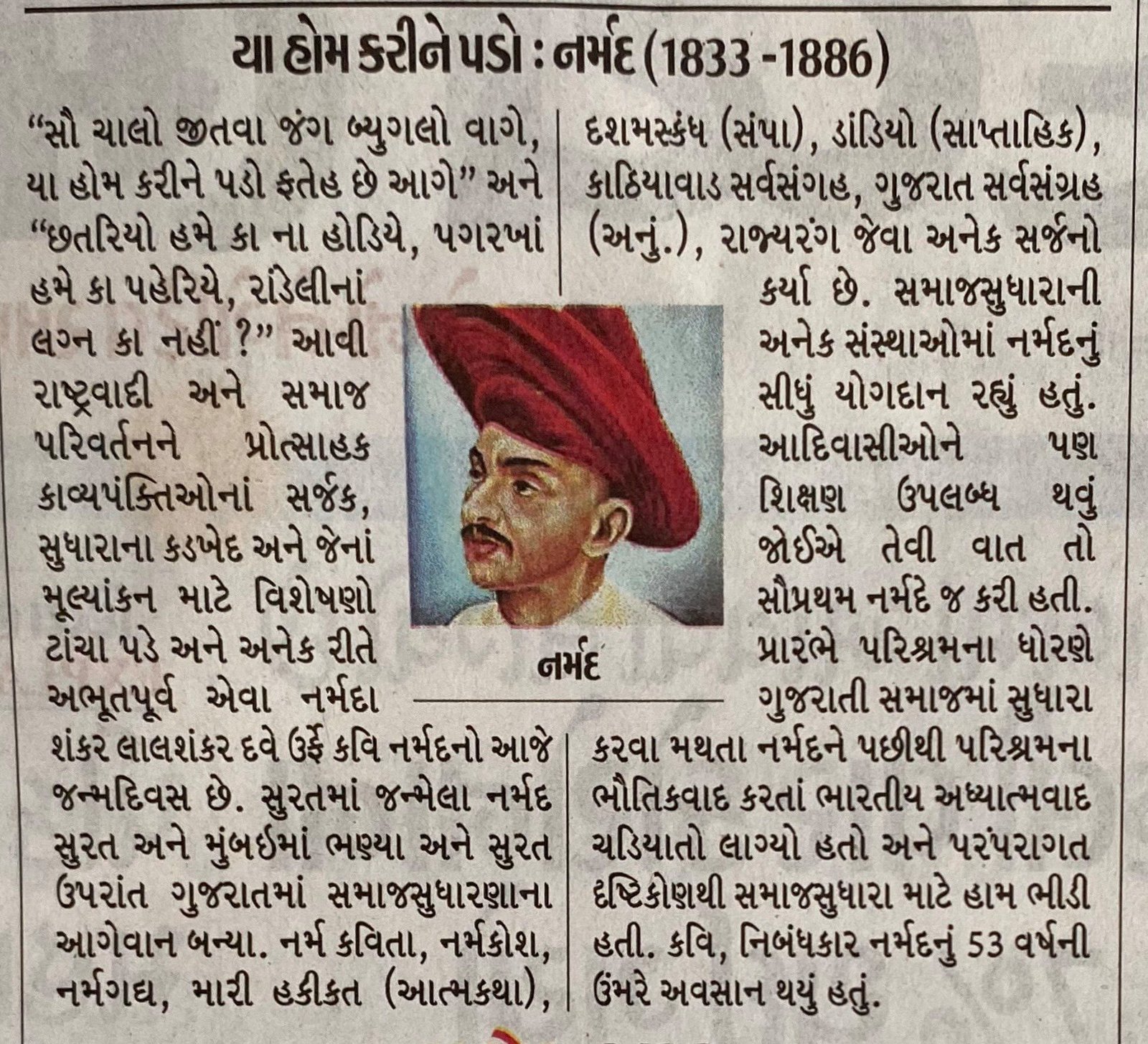કવિ નર્મદની પ્રચલિત પંક્તિઓ
