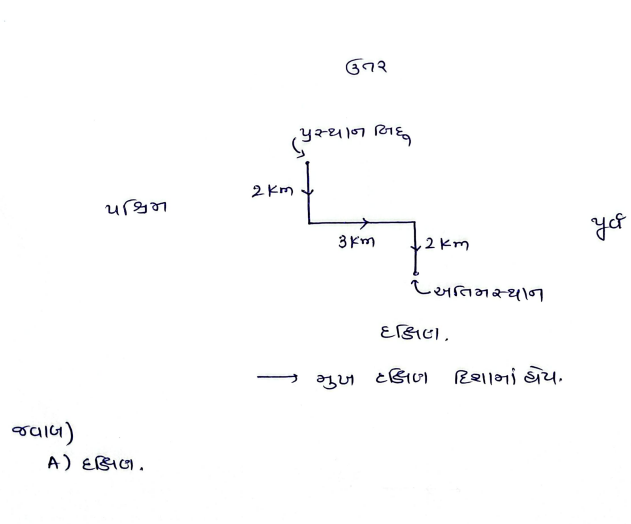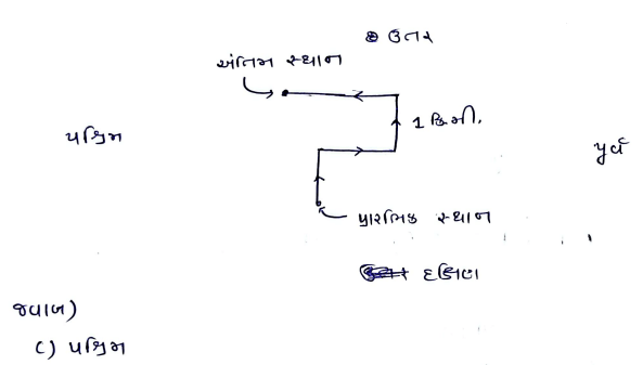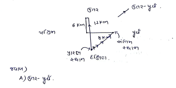 Answer Is: (A) 5 કિ.મી. ઉત્તર તરફ