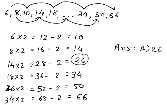6, 8, 10, 14, 18,…….., 34, 50, 66