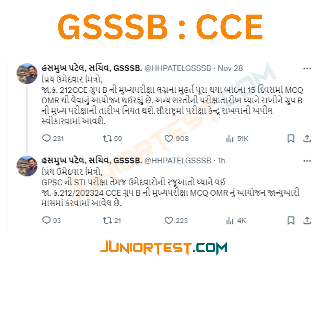 CCE Group - B ની પરીક્ષાની તારીખમાં ફેરફાર