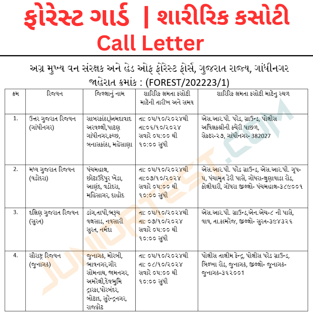 ફોરેસ્ટ ગાર્ડની શારિરીક કસોટીનાં Call Letter શરૂ.