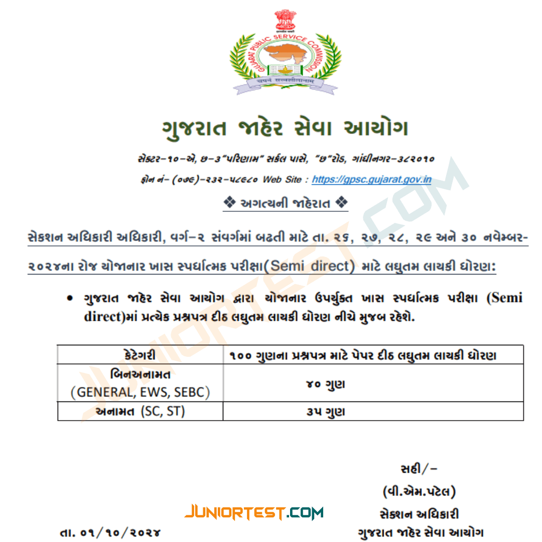 GPSC Official Notification : Click Here