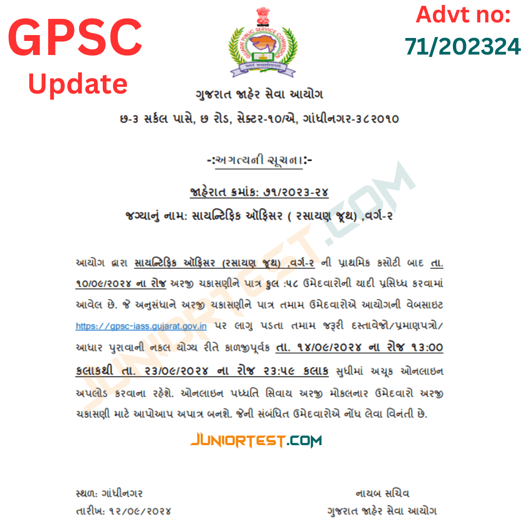 GPSC | સાયન્ટીફીક ઓફીસર Update