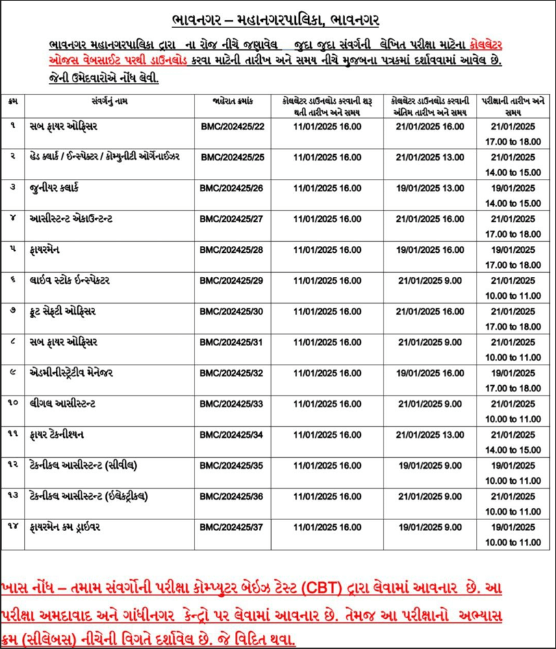 BMC દ્વારા વિવિધ પરીક્ષાની તારીખ જાહેર