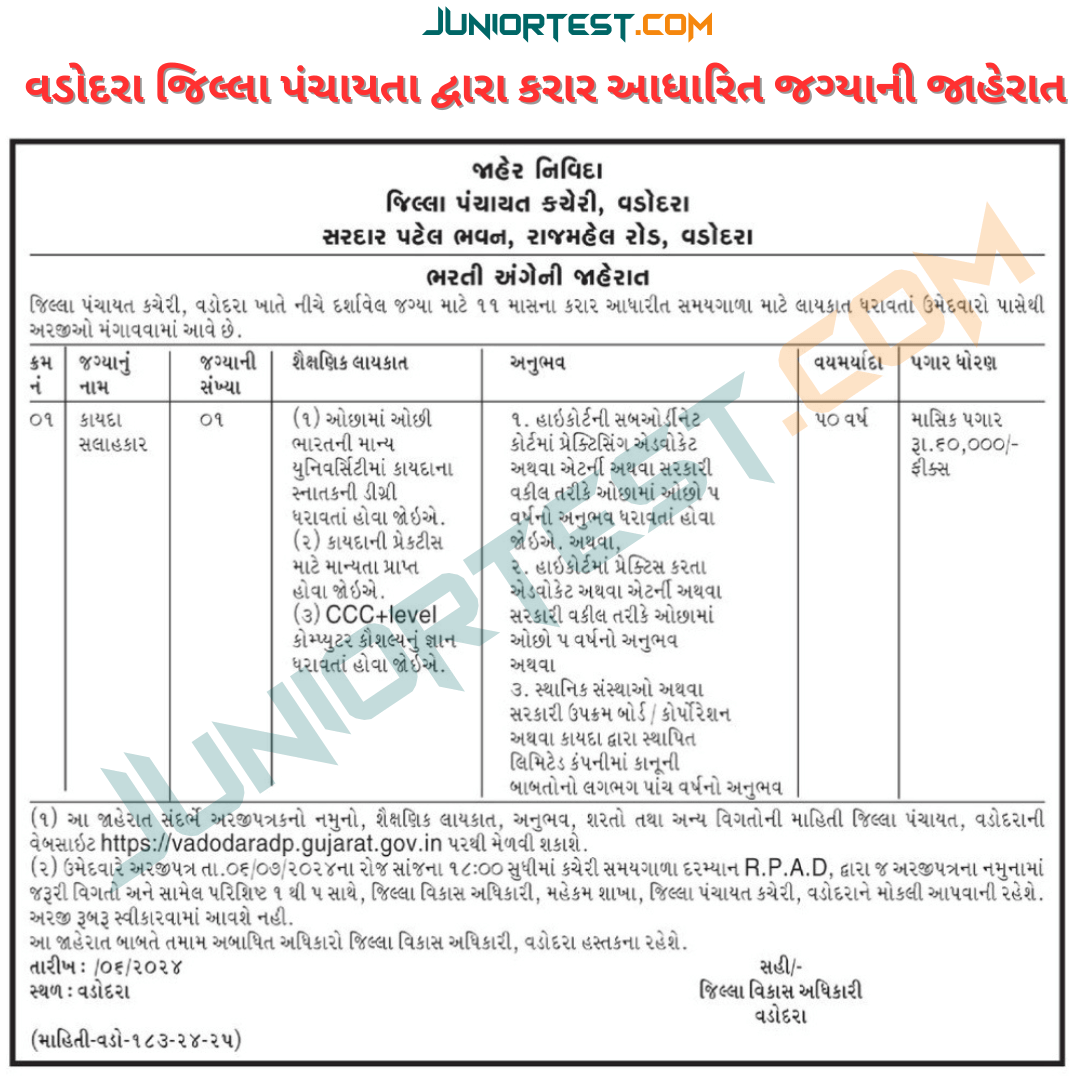 Recruitment Organization : District Panchayat Vadodara (District Panchayat)