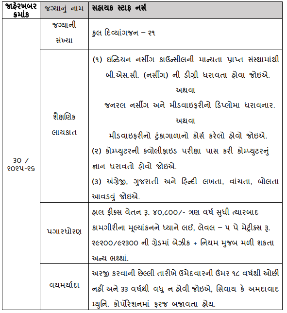 - Age relaxation will be applicable for Women candidates and reserved categories (PWD/Divyang) as per the prevailing rules of the Ahmedabad Municipal Corporation.