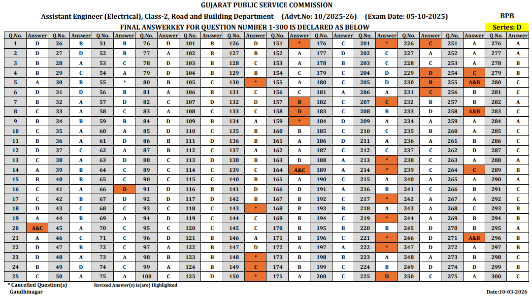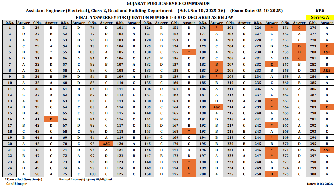 Important for the exam : GPSC Assistant Engineer Final Answer Key 2025
