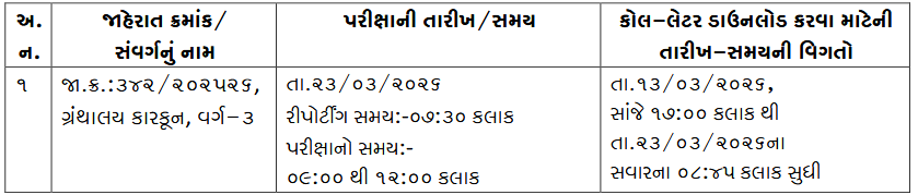 GSSSB Librarian Clerk Call Letter 2026 : The Gujarat Gaun Seva Pasandgi Mandal (GSSSB), Gandhinagar, has officially announced the exam date and call letter download schedule for the Librarian Clerk (Granthalaya Karun), Class-3 post under the technical cadre. This notification is specifically for the direct recruitment advertised under Advt No. 342/202526.