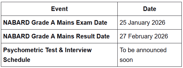 | NABARD Grade A Mains Result Date | 27 February 2026 |