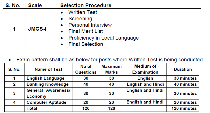 - Online Written Test: 120 marks covering English, Banking Knowledge, General Awareness, and Computer Aptitude.