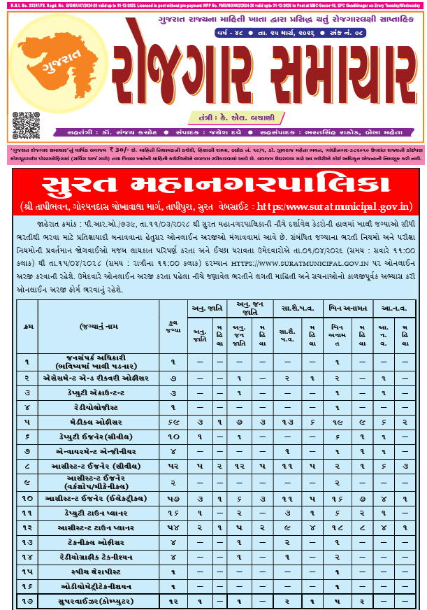 Download Gujarat Rozgaar Samachar pdf (25-03-2026) |