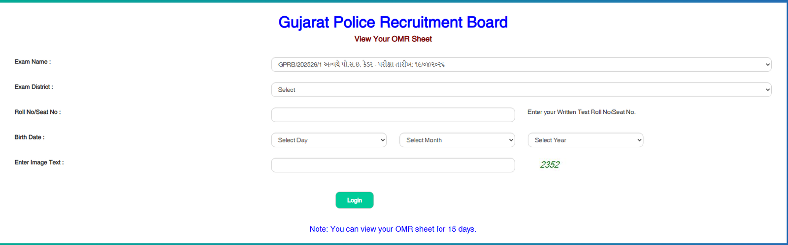 જાહેરાત ક્રમાંક:GPRB/202526/1 અન્વયે યોજાયેલ પો.સ.ઇ. કેડરની લેખિત પરીક્ષામાં હાજર રહેલ ઉમેદવારોની સ્કેન થયેલ OMR Sheet ડાઉનલોડ કરવા માટે અહી કલીક કરો. OMR Sheet તા.૦૪/૦૫/ર૦ર૬ સુધી ડાઉનલોડ કરી શકશે.