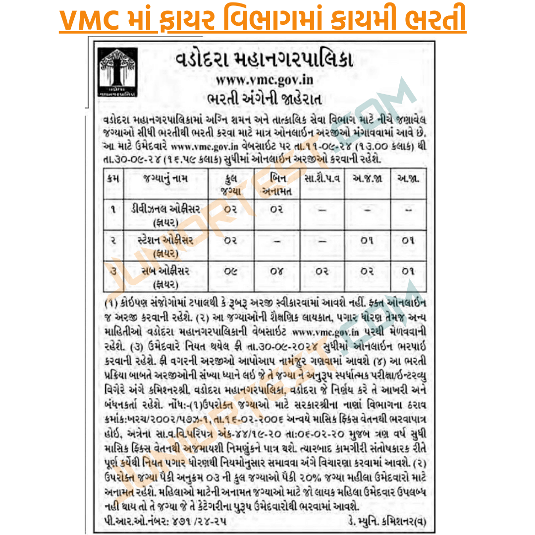 VMC Fire વિભાગમાં ભરતી